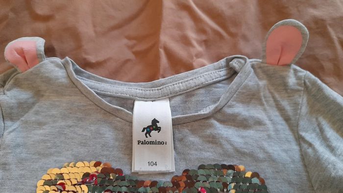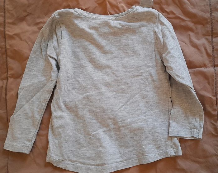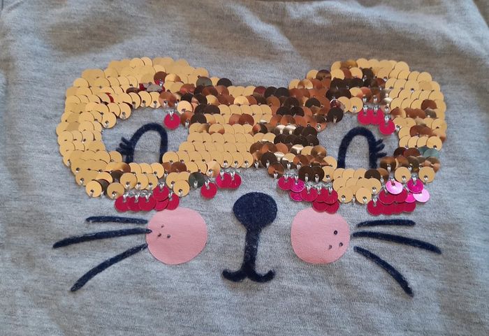 T-shirt manches longues. Oreilles chat sur les épaules. Tête chat en sequins.