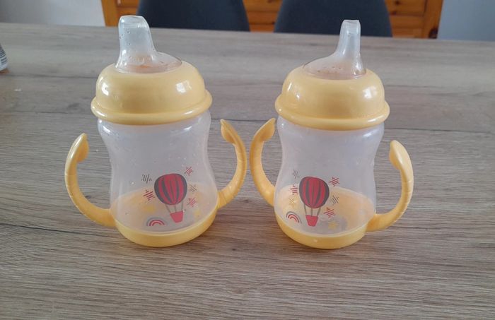 Lot de 2 timbales d'apprentissage Tétine amovible. 2 poignées. Idéal pour une à la maison et une chez la nounou/crèche/famille....