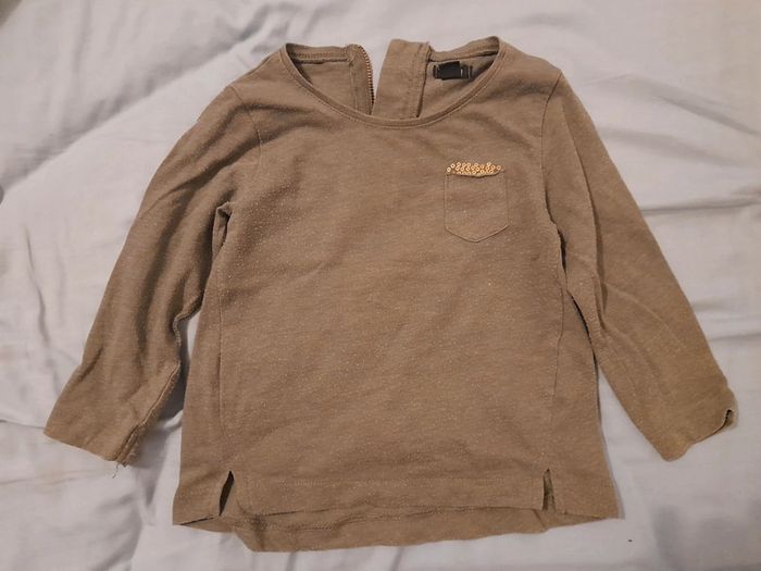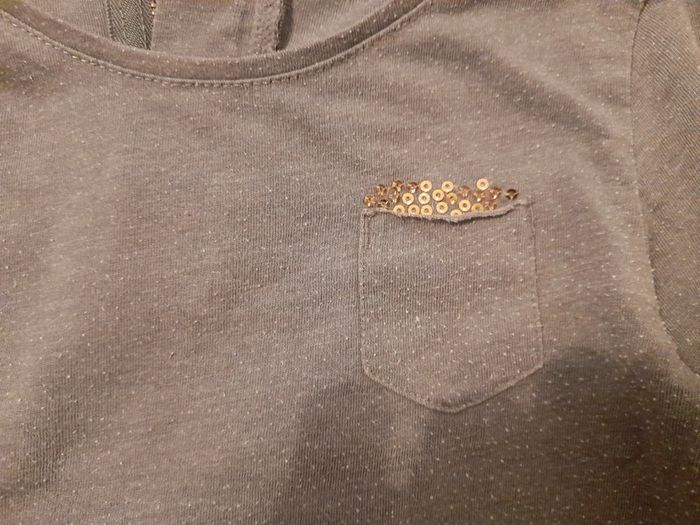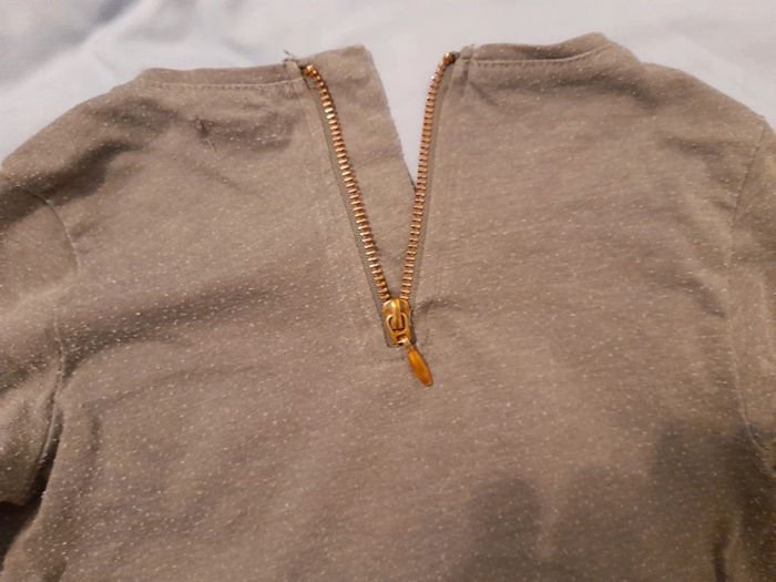 T-shirt manches longues. Fermeture éclair derrière Brillant à la pochette sur la poitrine.