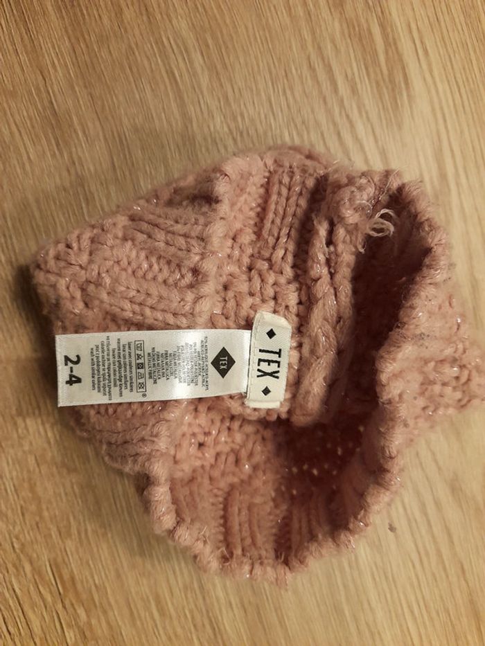 Bonnet. Rose avec fil doré.