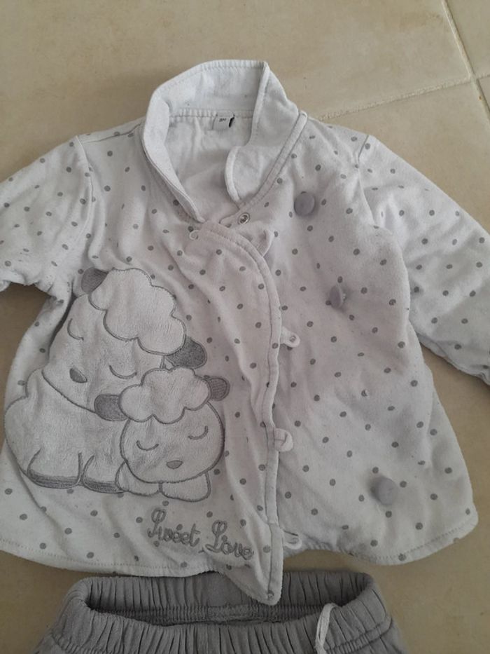 Ensemble veste pantalon. Pour l'hiver. Manque un bouton sur la veste mais bouton de rechange sur l'étiquette pour qui sait coudre.
