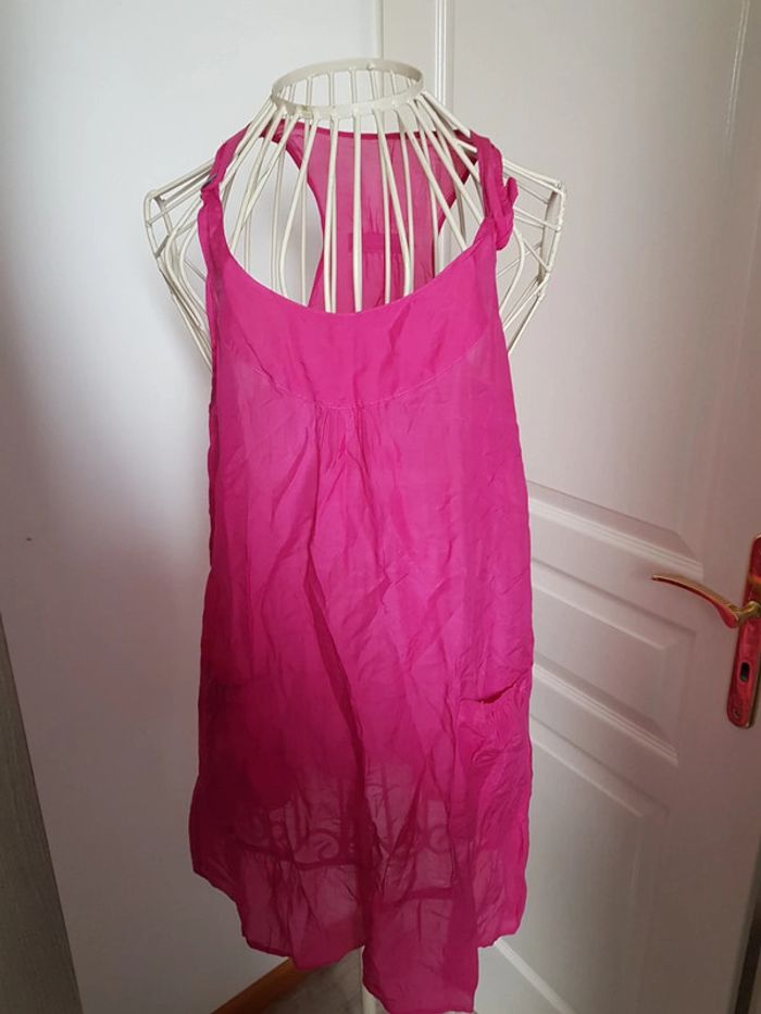 Robe été femme 40 Assez souvent portée (assez courte d'après mes souvenirs) Le fond de robe est celui de la robe rose mais il manque un bouton (je la donne avec elle ne fait pas partie du prix) #cel2462femme40