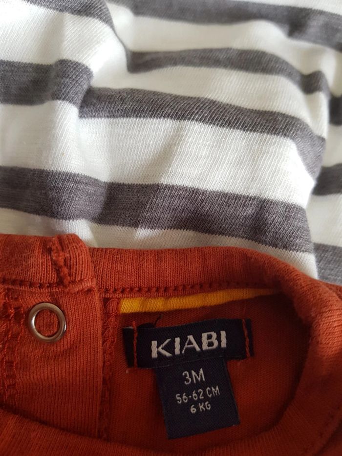 Lot de 5 hauts manches longues garçon 3 mois Peu portés (le rayé bleu marine et orange est légèrement jauni au niveau du col voir 7eme photo) 3 kiabi 1 grain de blé et 1 gemo #cel2462garçon3mois