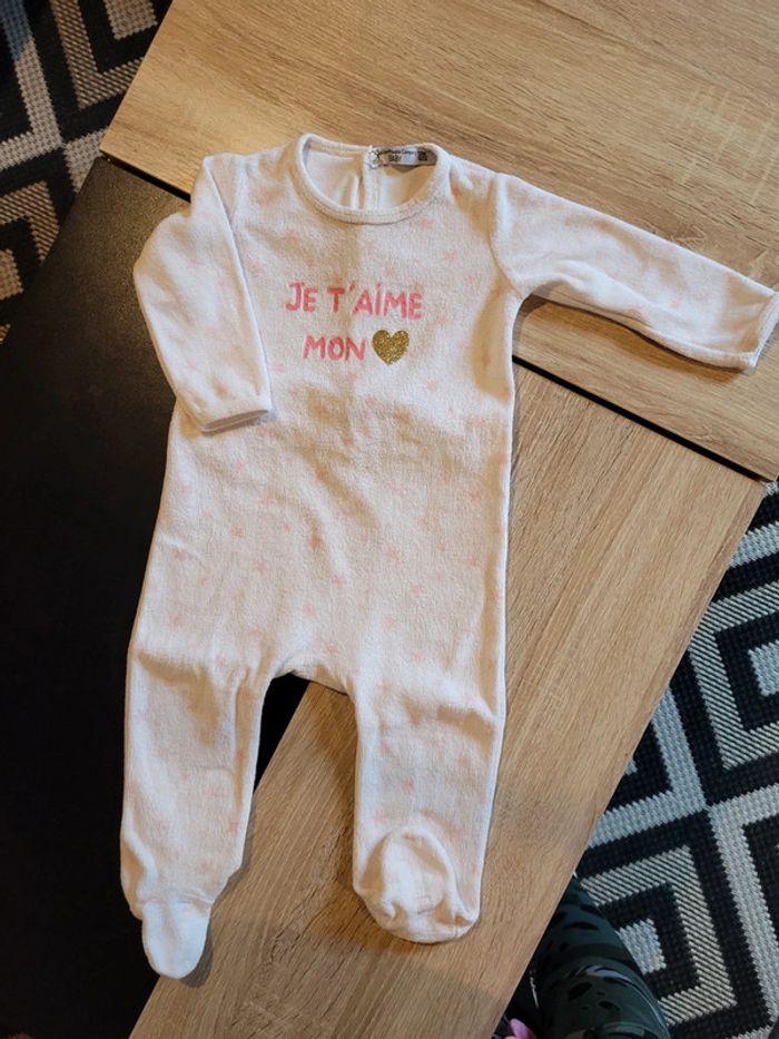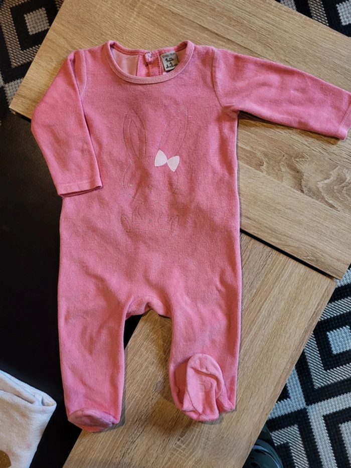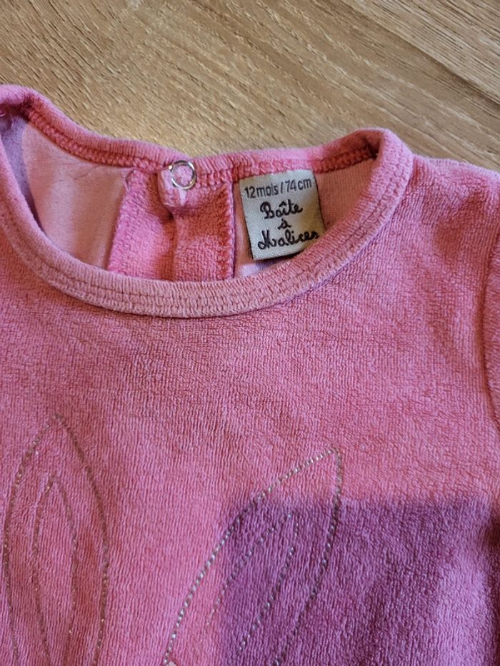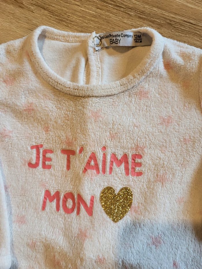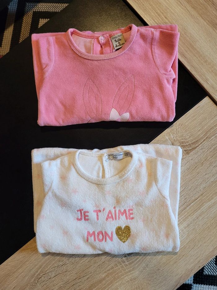 Lot de 2 pyjamas. Taille 12 mois. Bon état, légèrement décolorés au niveau du col. (Cf photos 4 et 5)