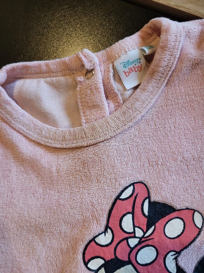 Pyjama Minnie. Taille 12 mois. Bon état, légèrement décoloré au niveau du col et d'une manche. (Cf photos 4 et 5)