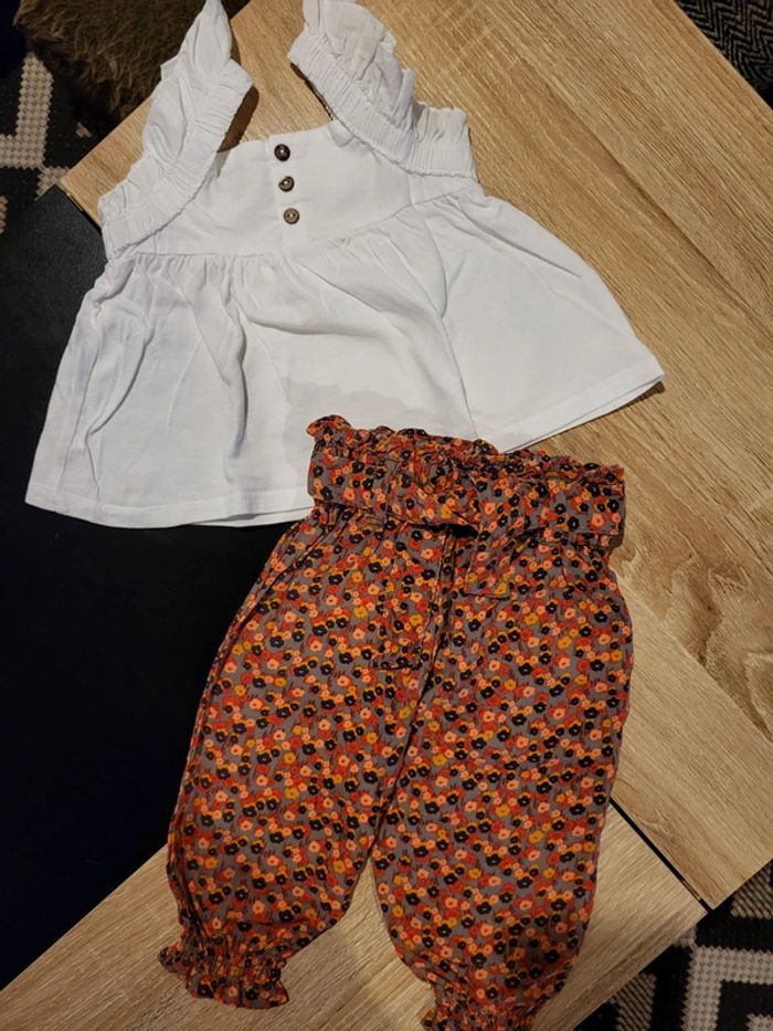 Ensemble 2 pièces Kiabi. 1 débardeur + 1 pantalon fluide. Taille 6 mois. Parfait état.