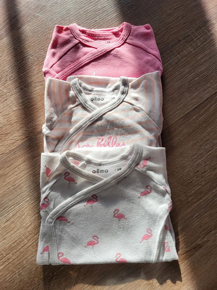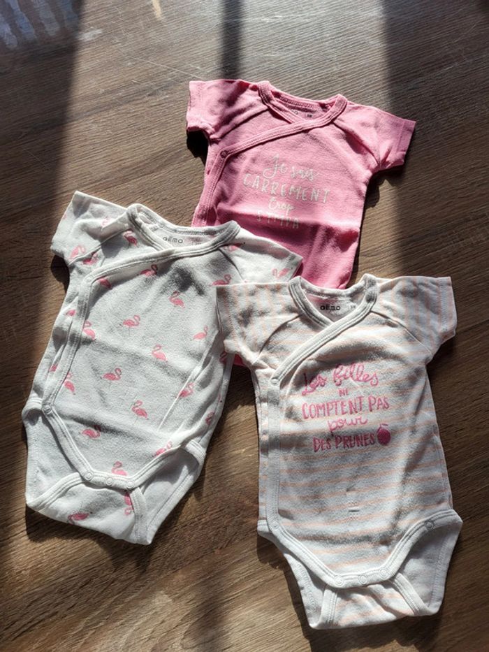Lot de 3 bodies manches courtes. Taille 3 mois. Très bon état.