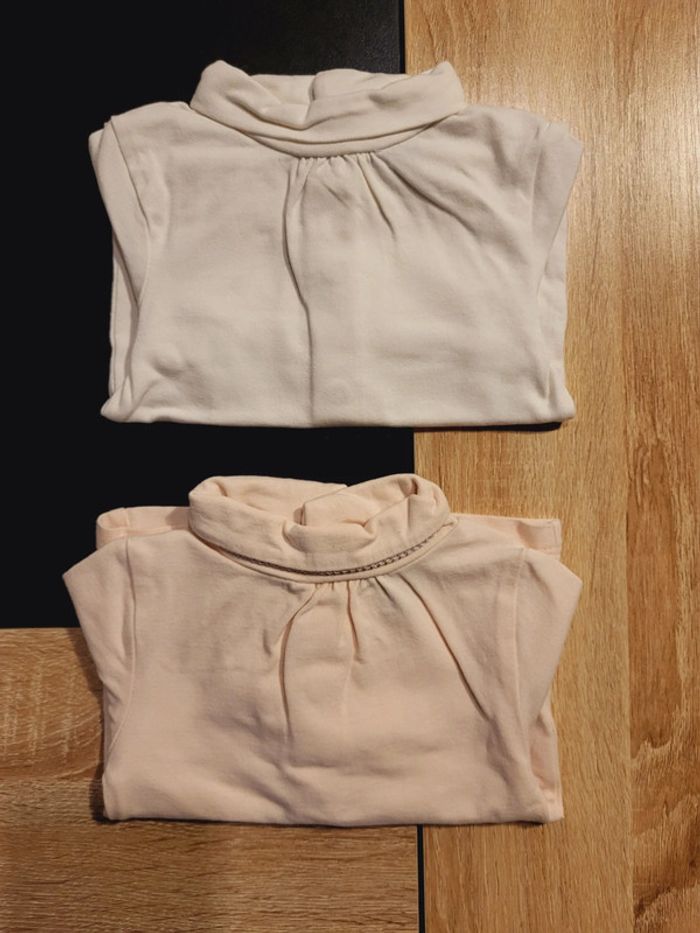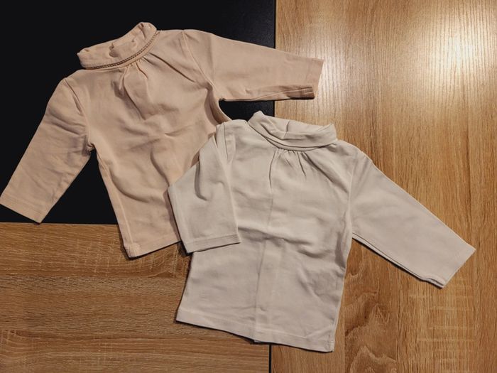 Lot de 2 sous pull Kiabi. Blanc et rose pâle. Taille 3 mois. Très bon état.