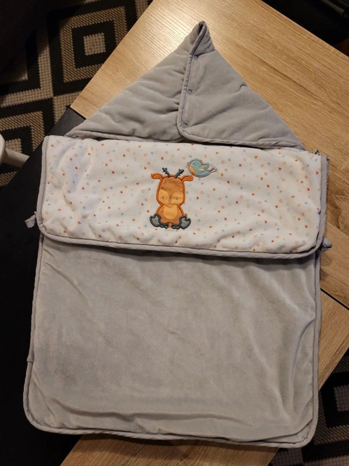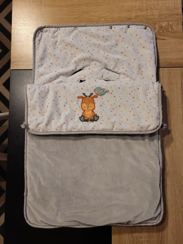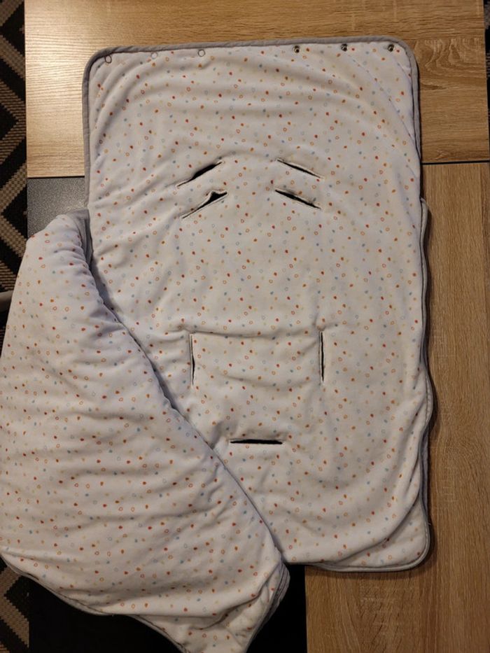 Nid d'ange polaire. En parfait état, jamais servi. Possible de passer le harnais du cosy ou de la nacelle. Marque Doukidou.