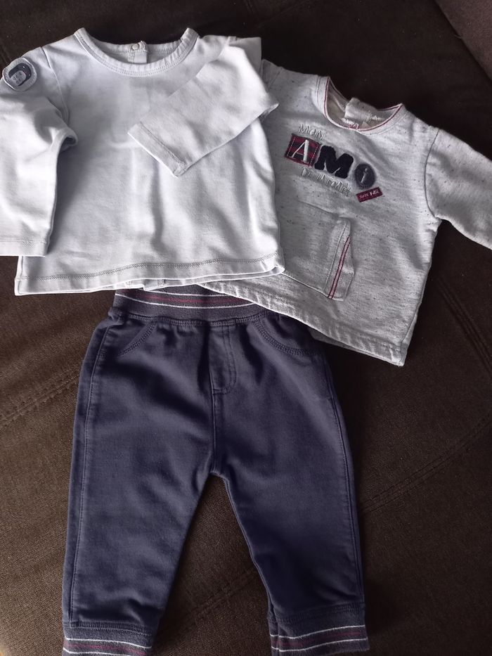Ensemble de sport comprenant 1 jogging et 2 tee shirt manche longue boutonnage au dos. Le tout en excellent état.