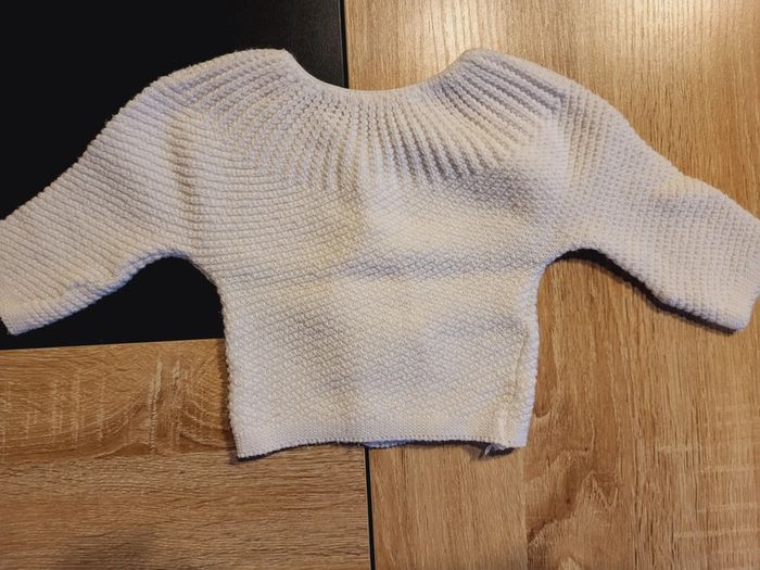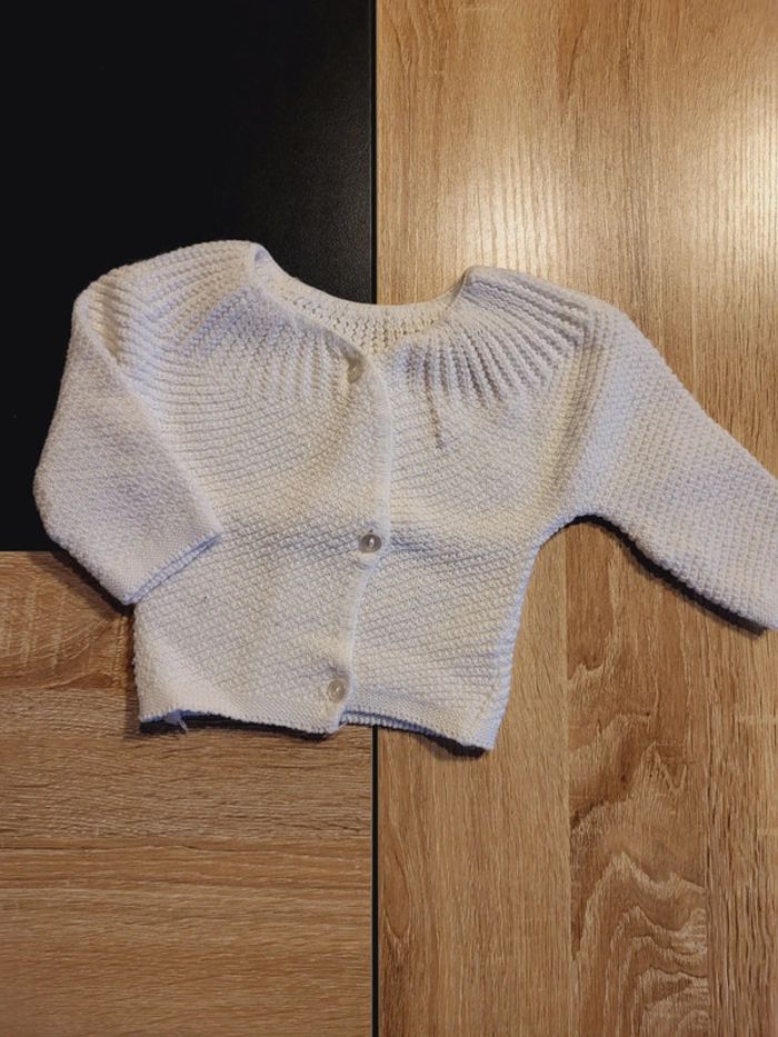 Gilet fait main. Laine blanche. Taille 1 mois.