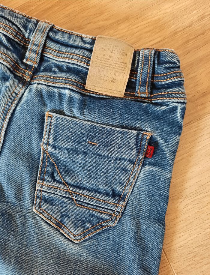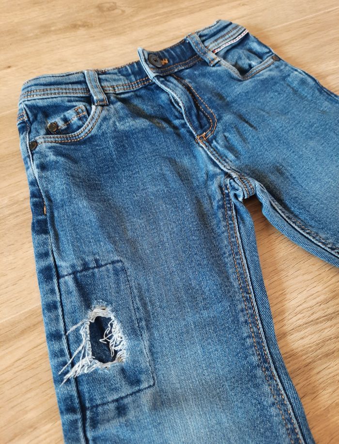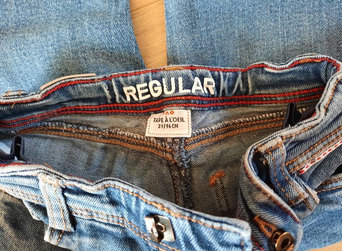 Jean avec coupe regular effet "rapiécé" d'origine! ajustable à la taille 2 poches avant et au dos taille 3 ans 96 cm très bon état #annabelle_60_garçontroisans