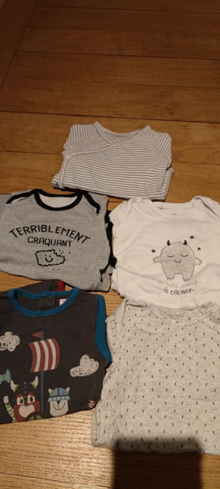 Lot 5 bodies manches longues Multi marques: dpam, tape a l'oeil, kimbaloo, gemo Taille 12 mois Bon etat