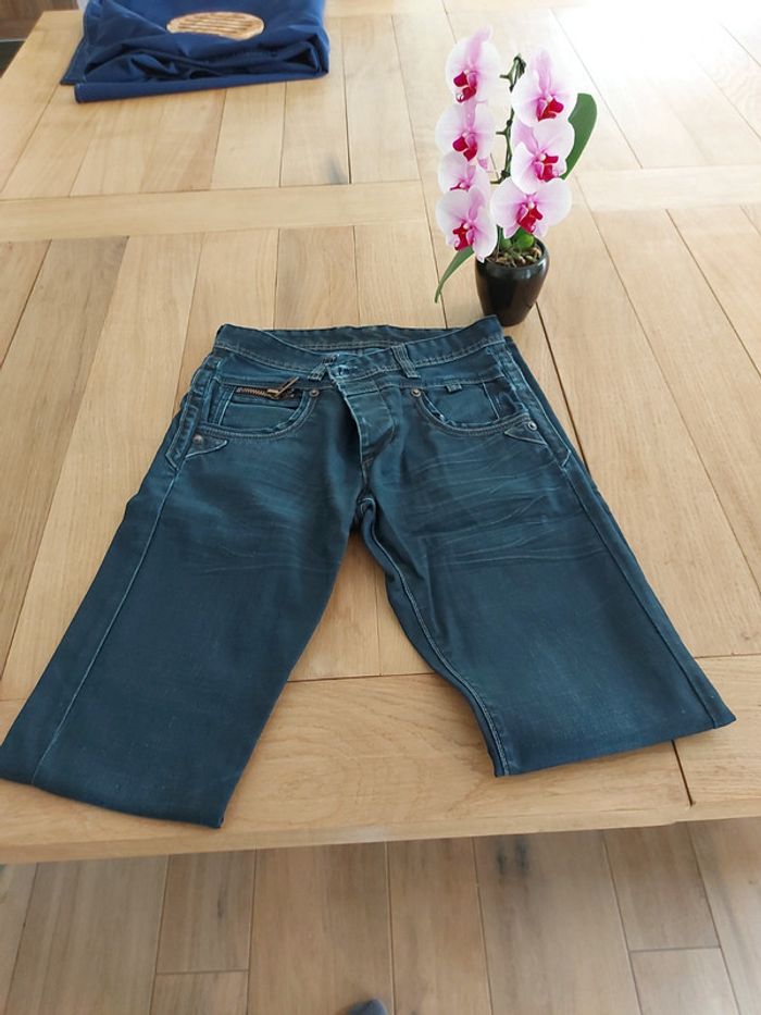Jean bleu foncé taille droite devred taille 29 Il manque une pression (voir dernière photo) mais sinon il est en très bon état