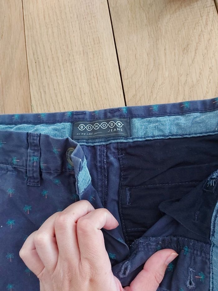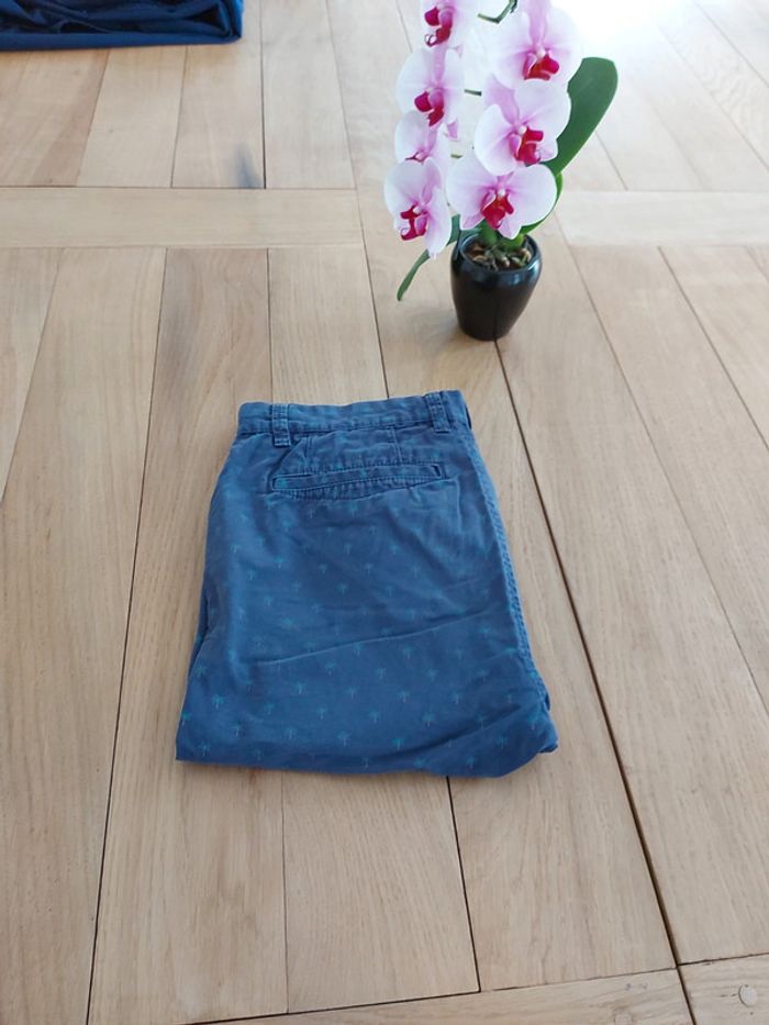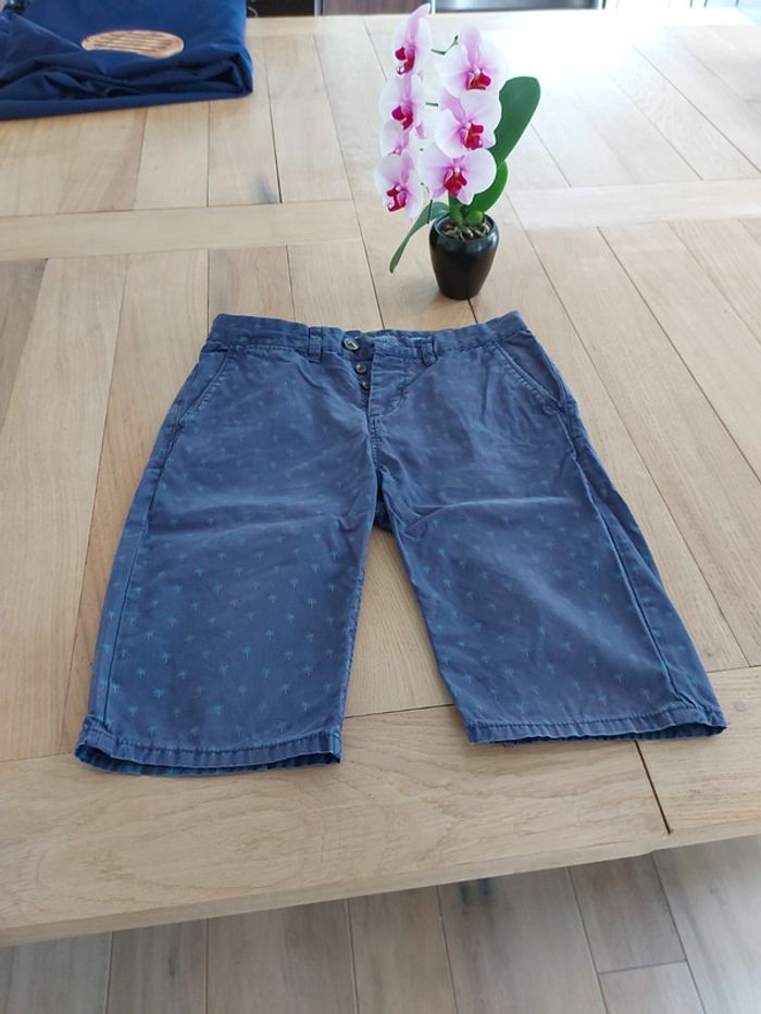 Short bleu avec palmier de marque bonobo. Taille 38. Il a bien été porté, la couleur est donc un peu moins vive