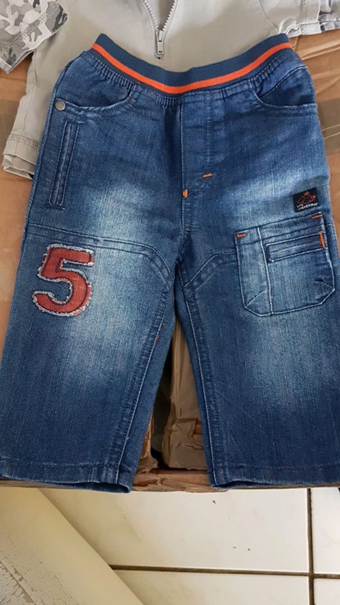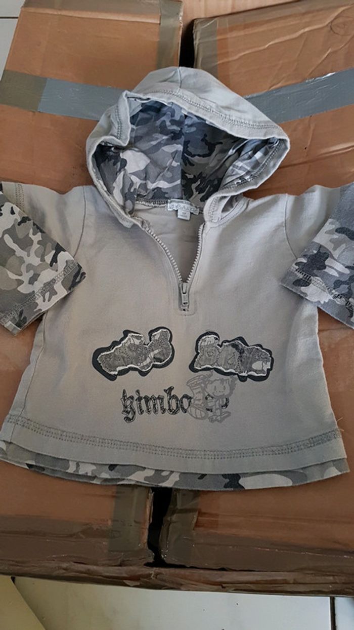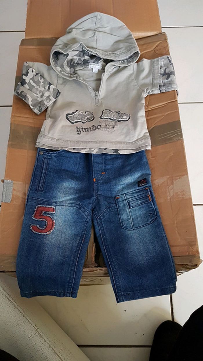 Ensemble 12 mois composé d un jean orchestra très bon état et d un polo effet militaire avec capuche kimbaloo en bon état (petit fils qui dépassent au niveau des coutures mais acheté ainsi)
