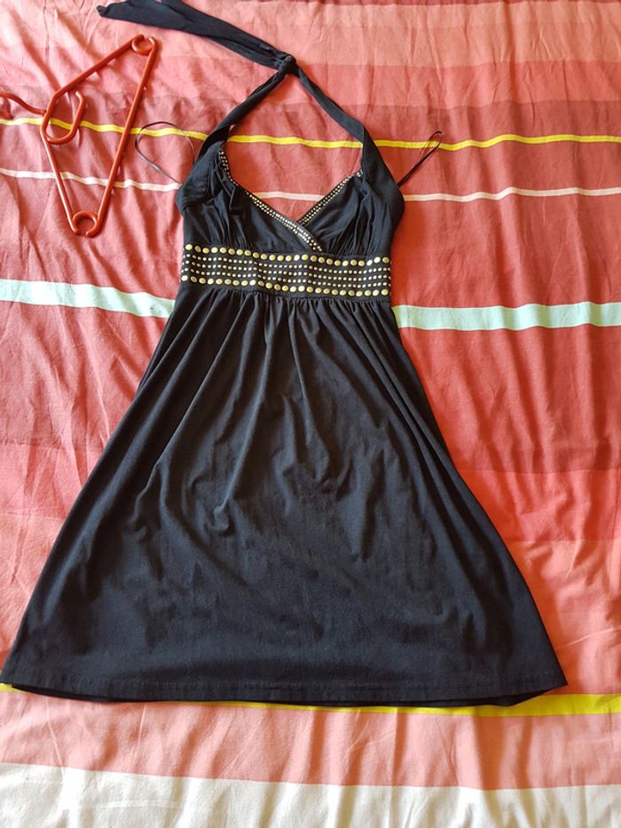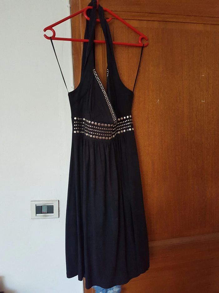Jolie robe noire effet velours. Dos nu, très peu portée.