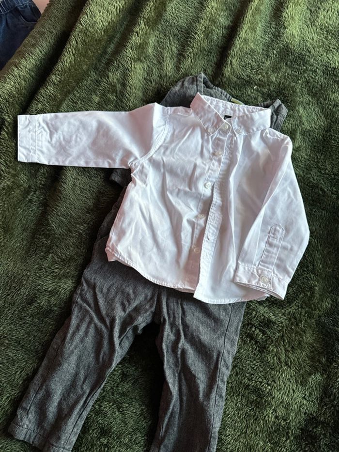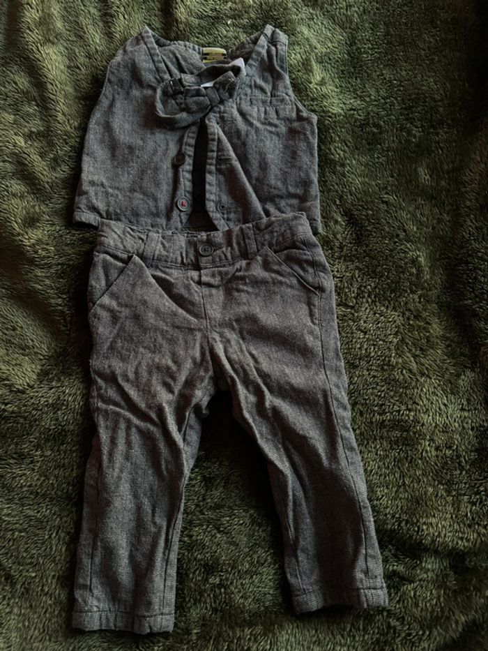 Costume gris foncé Boléro + pantalon + noeud papillon 74cm Chemise 9 mois (taille grand)