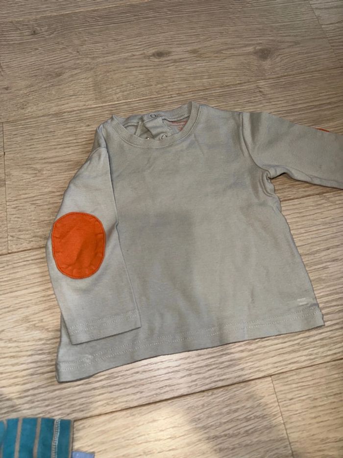 T shirt manche longue 12 mois Gris et patch orange au bras