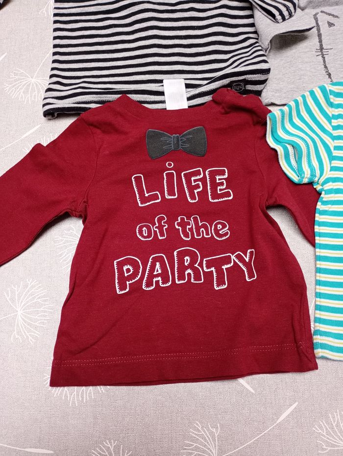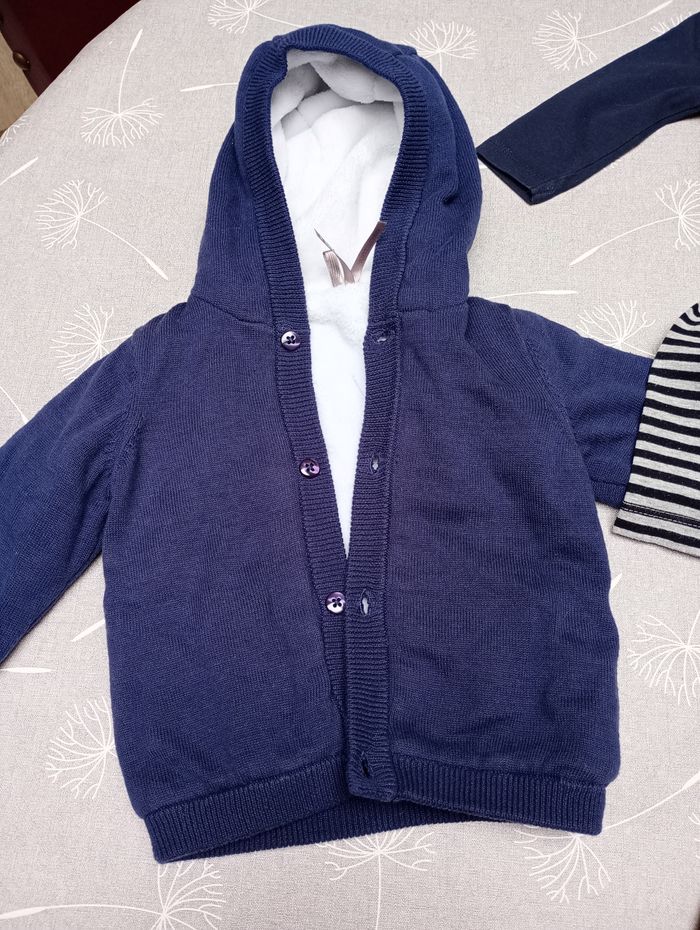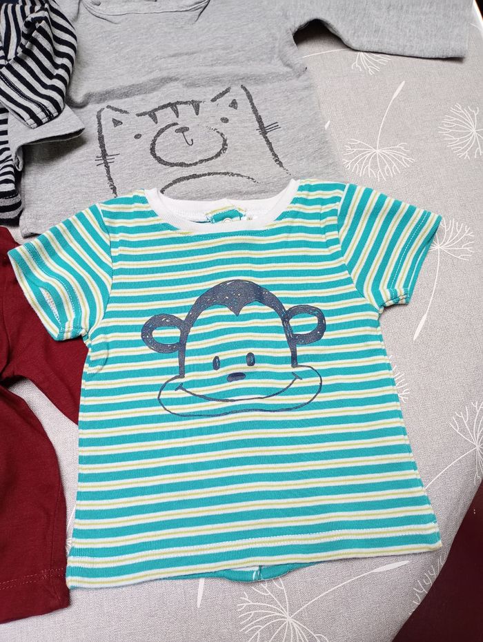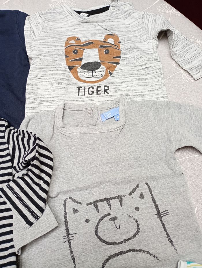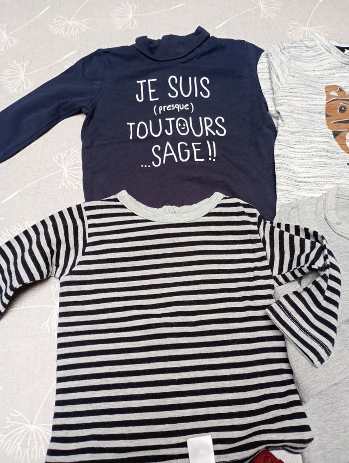 Lot de 5 blouses à longues manches, 1 t-shirt manches courtes et 1 manteau. Tous en très bon état. Taille 62, 3 mois. Le manteau a été porté une fois, il est impeccable et très chaud. Marque : Orchestra, TQF, Kitchoun, C&A, Gémo et Newborn. Bac 23