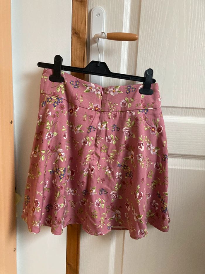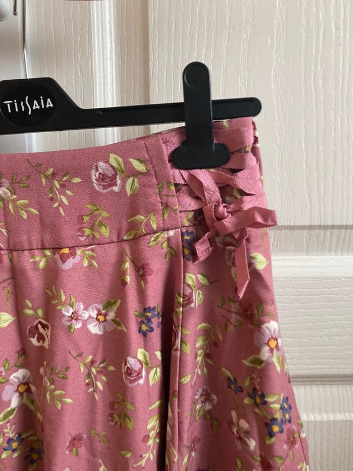 Jupe rose à fleurs vertes évasée avec lacets - photo numéro 4
