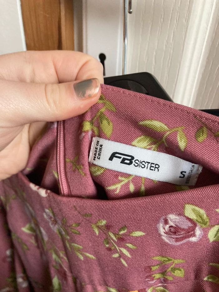 Jupe rose à fleurs vertes évasée avec lacets Fb sister taille s En très bon état