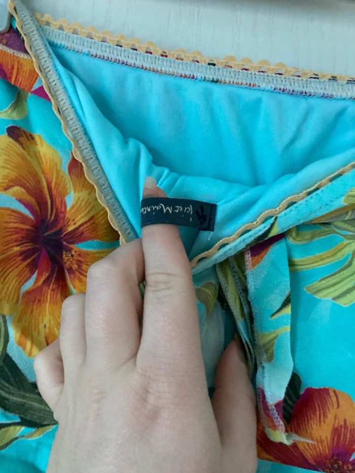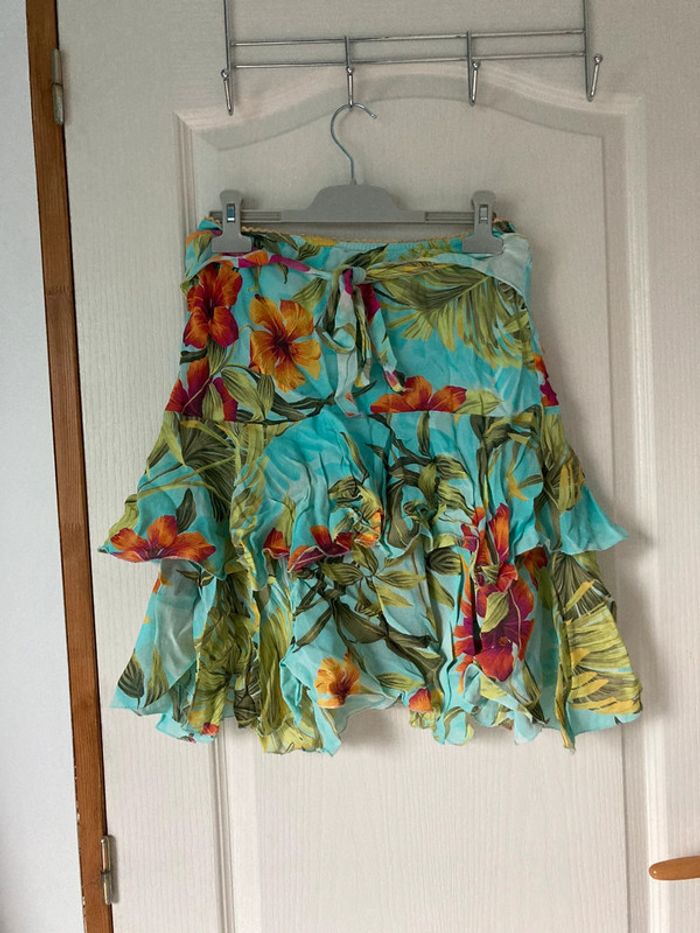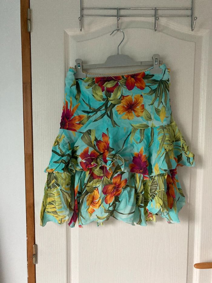 Jupe à froufrous bleue et vertes à fleurs Ici et maintenant taille 40 En très bon état