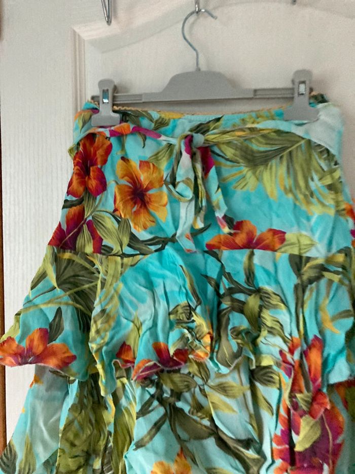 Jupe à froufrous bleue et vertes à fleurs - photo numéro 3