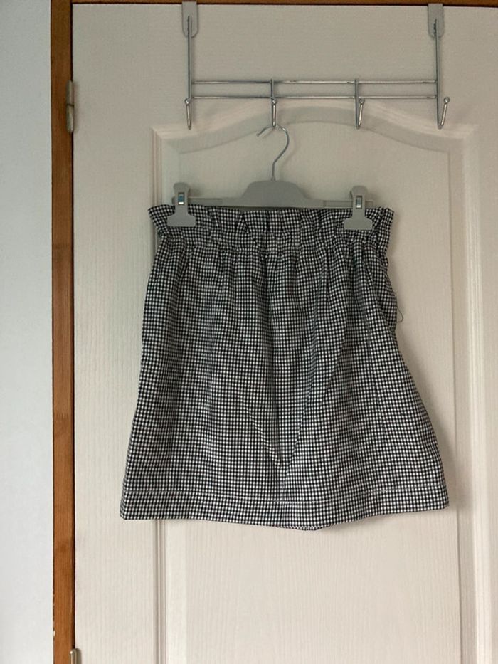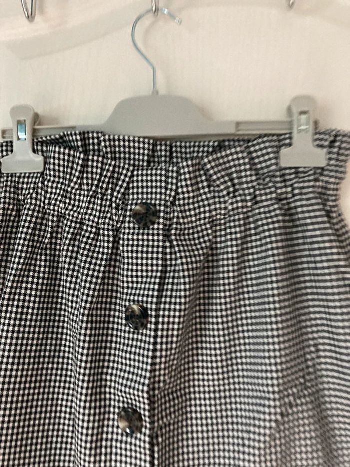Jupe taille haute à carreaux noirs et blancs à boutons - photo numéro 4