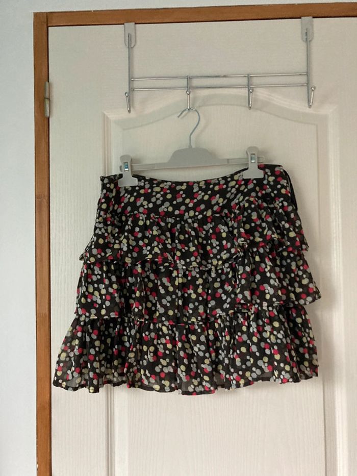 Jupe à froufrous noire à pois verts et bordeaux 3 suisses taille 40 En très bon état