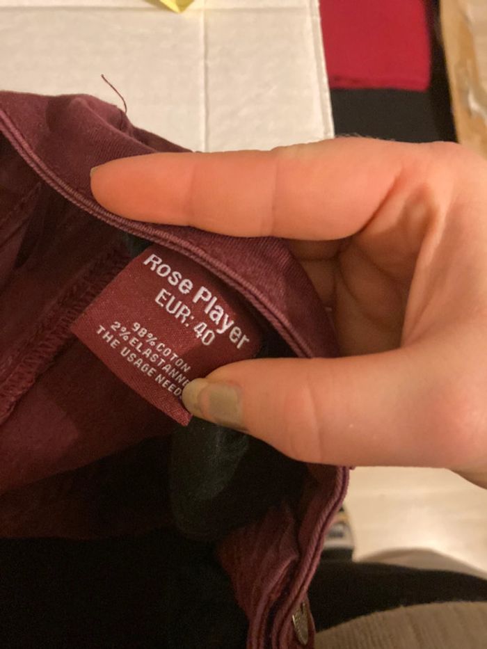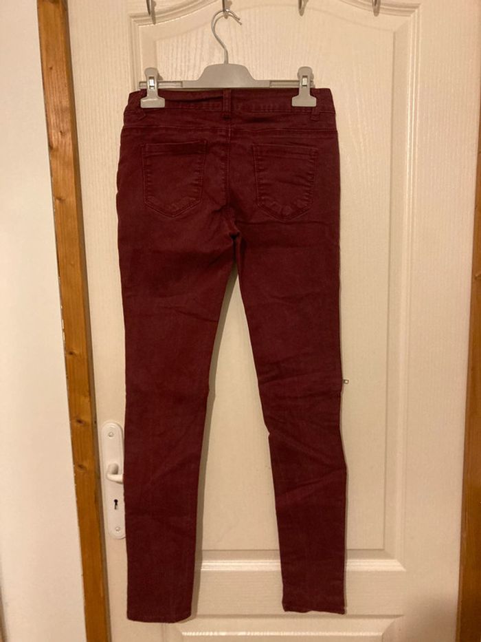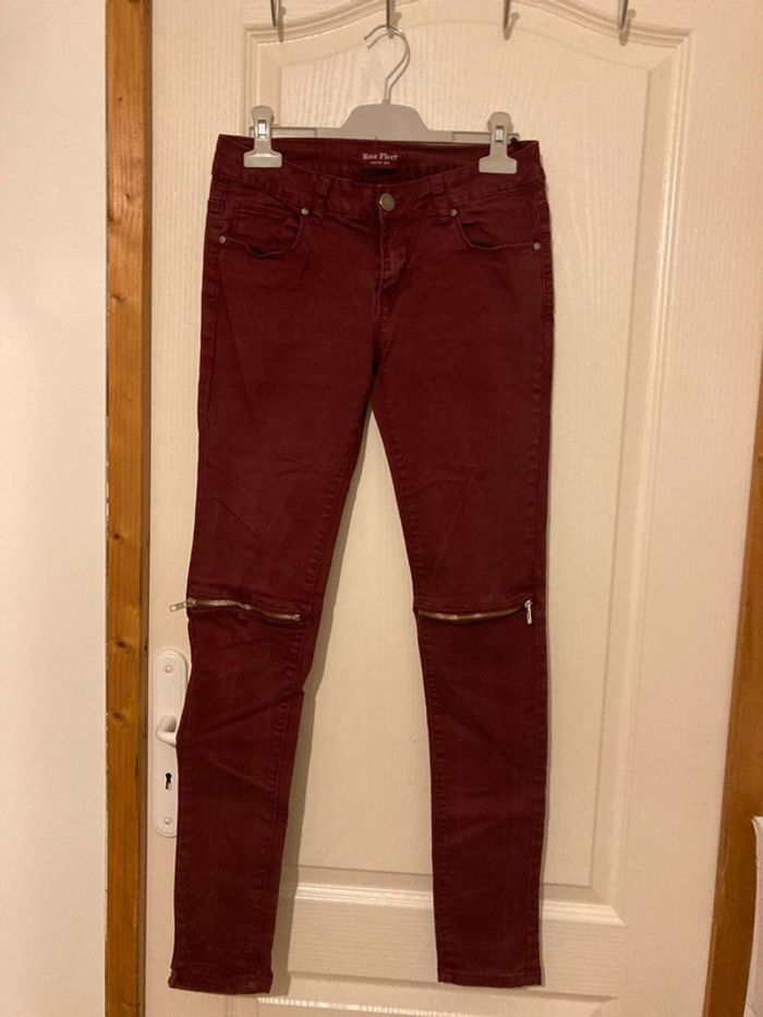 Jean skinny bordeaux avec fermetures argentées aux genoux Rose player taille 40 En très bon état