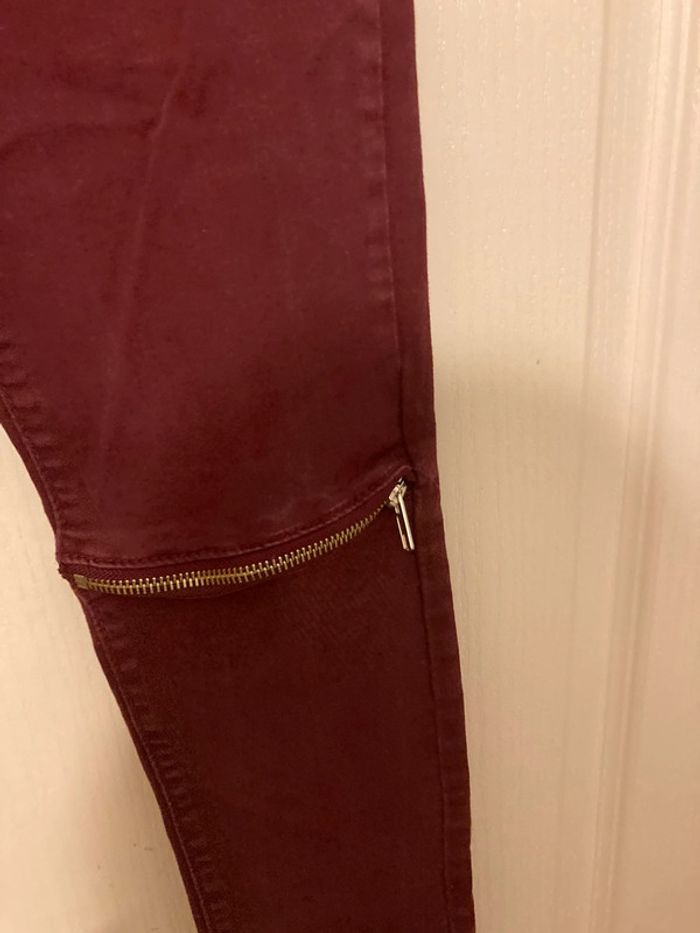 Jean skinny bordeaux avec fermetures argentées aux genoux - photo numéro 1