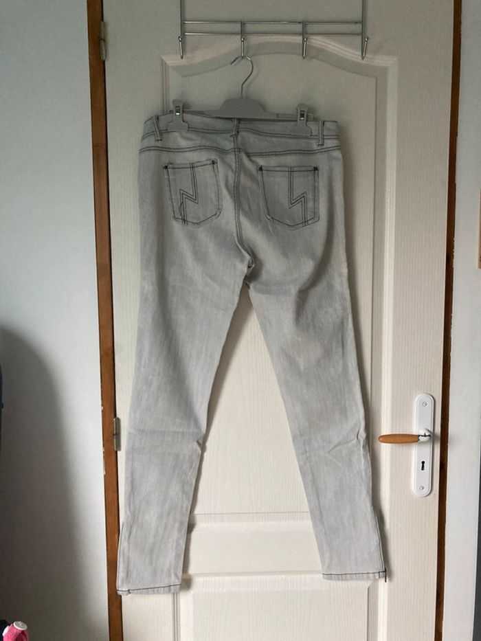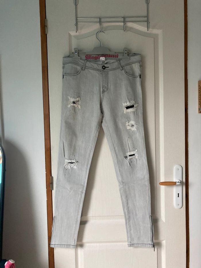 Jean skinny gris effet destroy avec strass La redoute convient à un 40 En très bon état