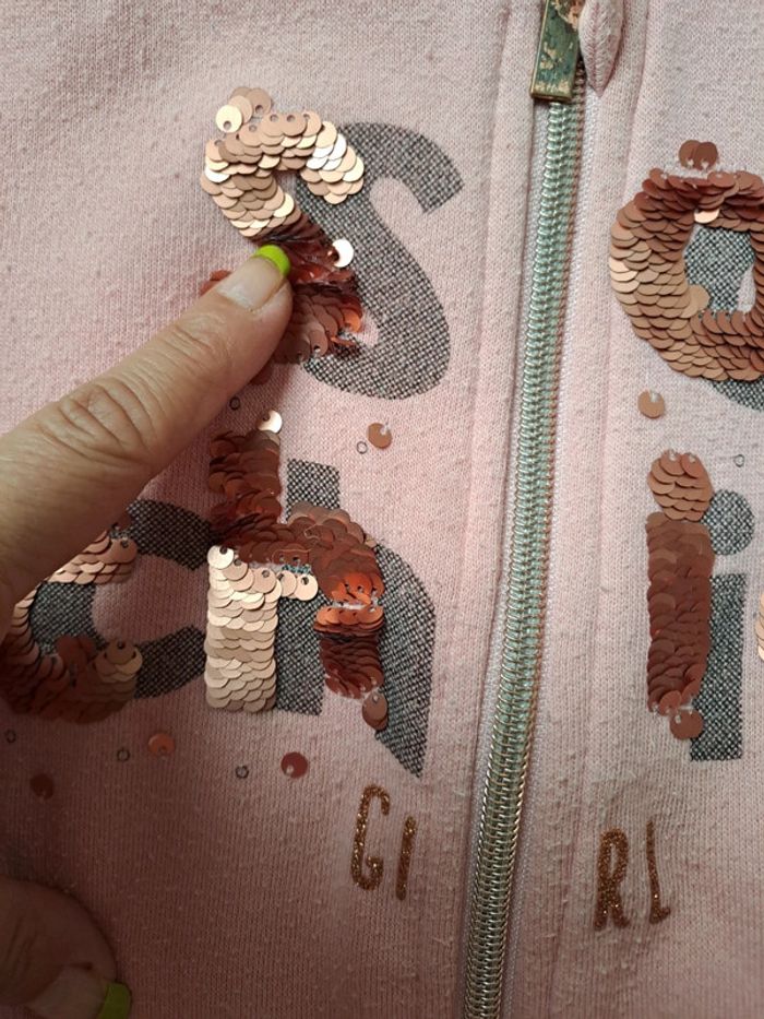 Veste molletonnée sequins réversibles #orchestra Bouloché au niveau des manches mais reste en très bon état #deborahdubois1fille6ans Lien pour d'autres articles