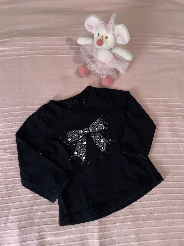Te shirt manches longues motif pailleté 12 mois Envoie rapide 📦 N’hésitez pas à consulter mon dressing pour faire votre lot car beaucoup d’articles disponibles à petits prix 😊