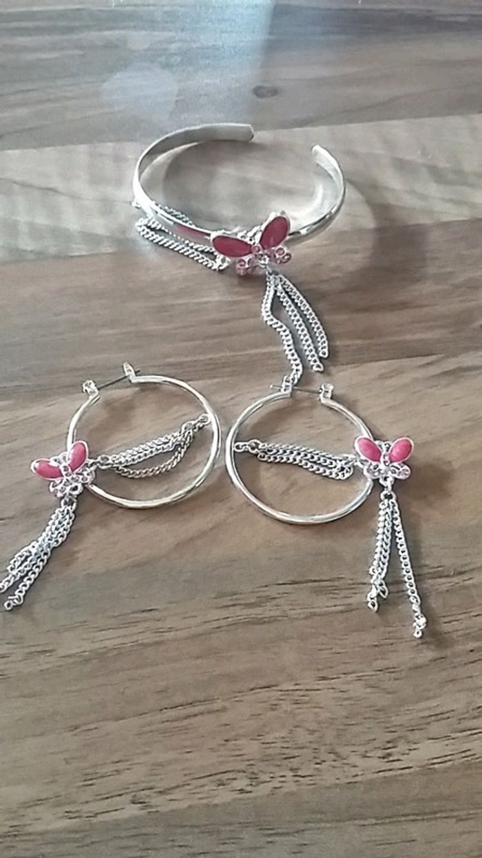 # ensemble boucle d'oreilles et bracelet # enfant #papillon #argentveritable