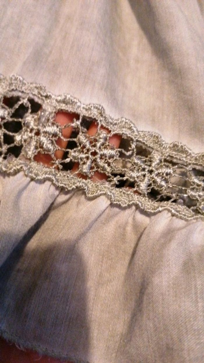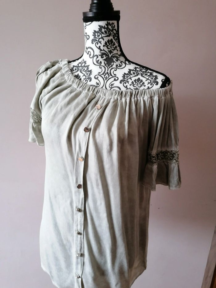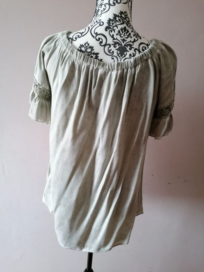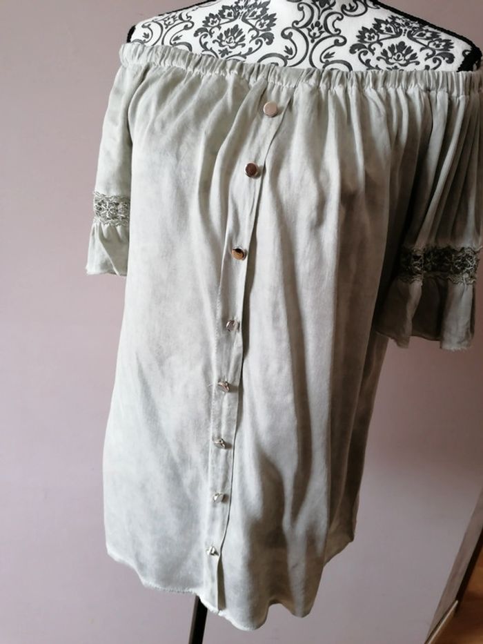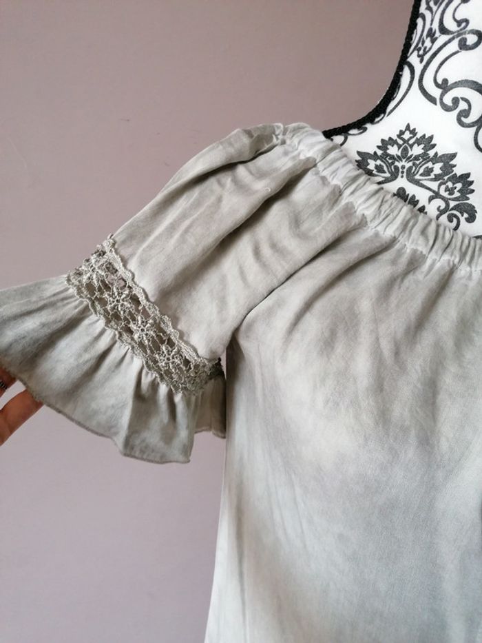 Petit haut fluide #madeinitaly 100% viscose très léger à porter La couleur est dans le vert gris La dentelle un peu décousu mais ne se voit pas. Voir photo Taille unique #deborahdubois1tailleunique