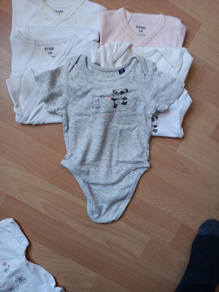 Lot de 7 bodies #kiabi Ils ont certains le col jauni ce n'est pas sale c'est le temps qui a fait cela C'est du 1mois #deborahdubois1fille1mois