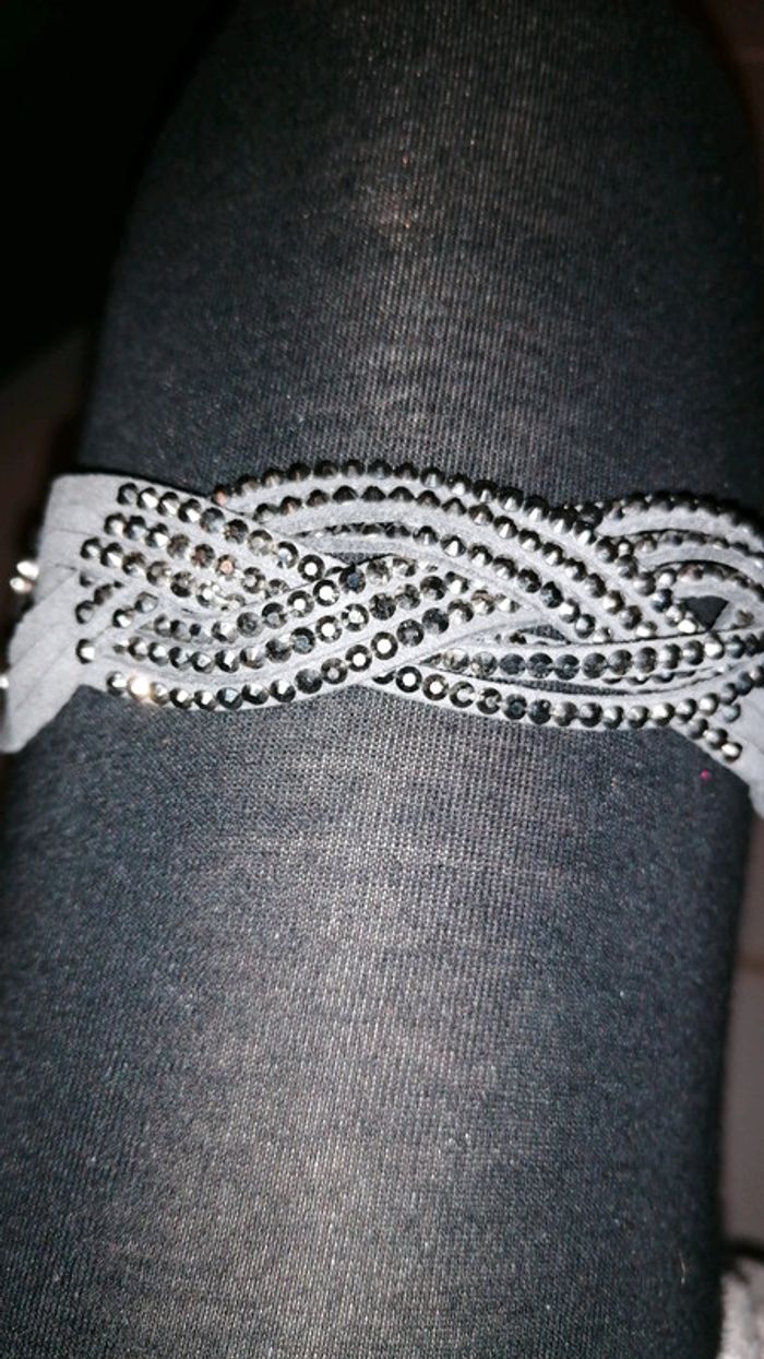 Bracelet tressé brillant 2 niveaux de boutons pressions ce qui permet de l'adapter au poignet