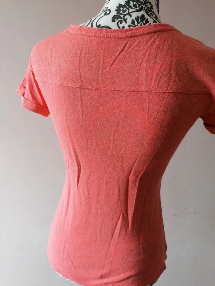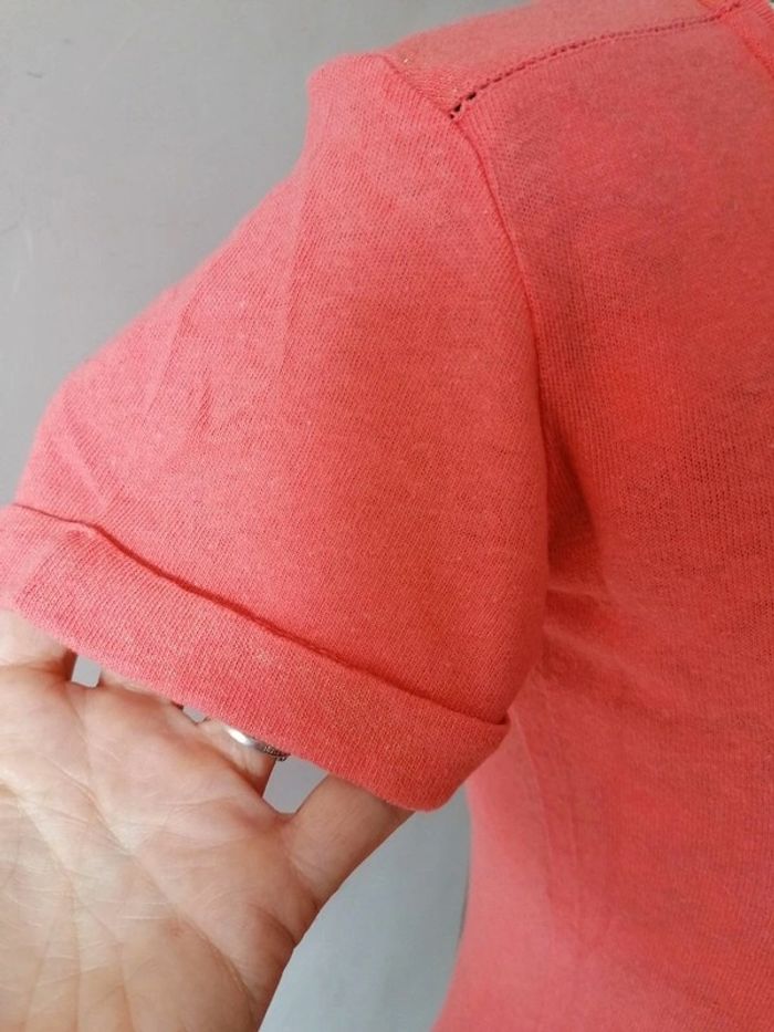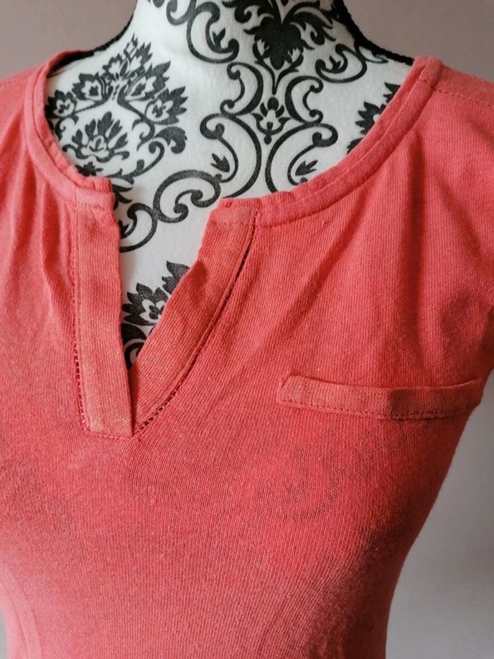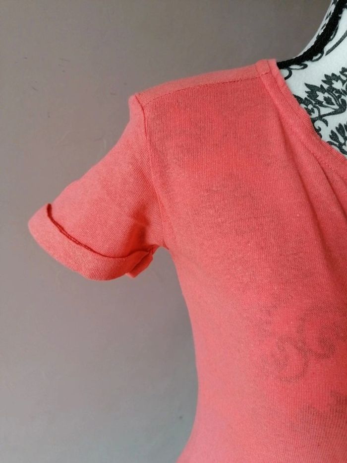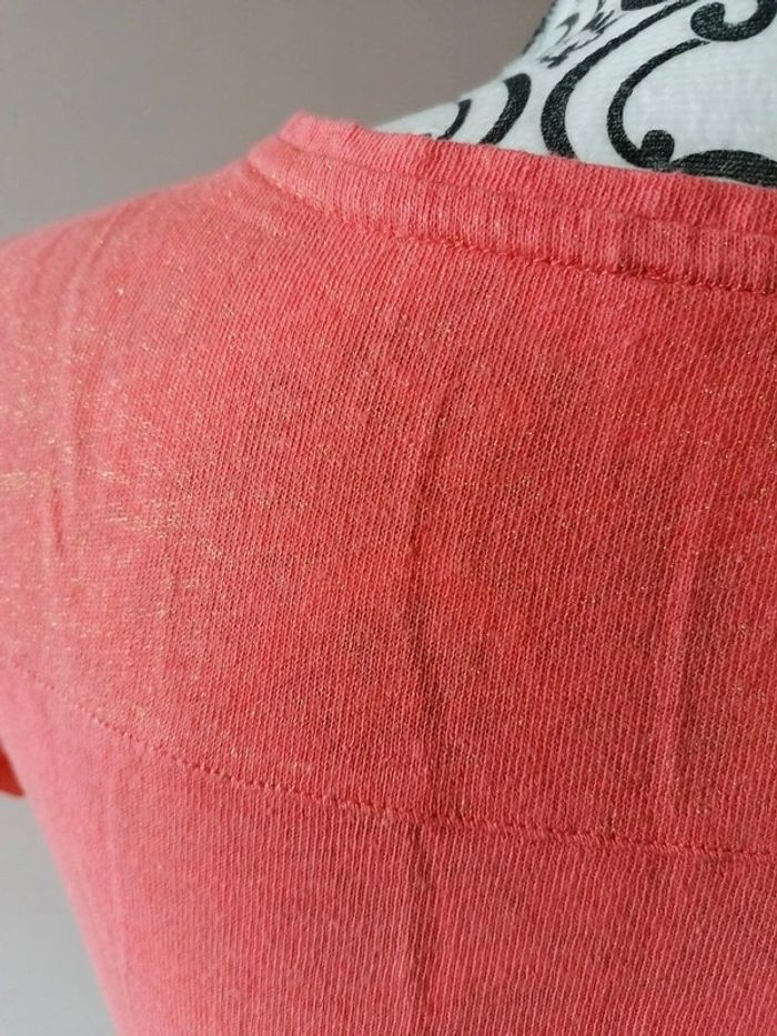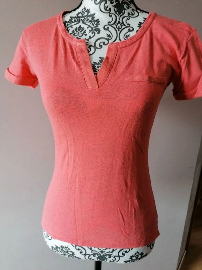 Petit top orange idéal pour l'été .col en V avec des reflets dorés. Idem sur les épaules #promod #deborahdubois1taille36