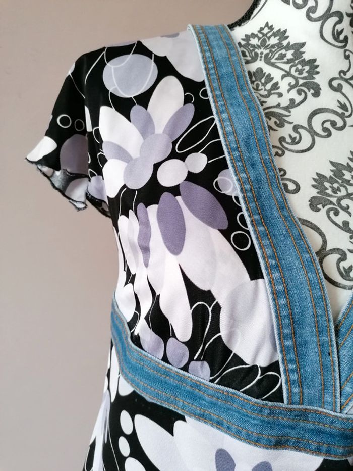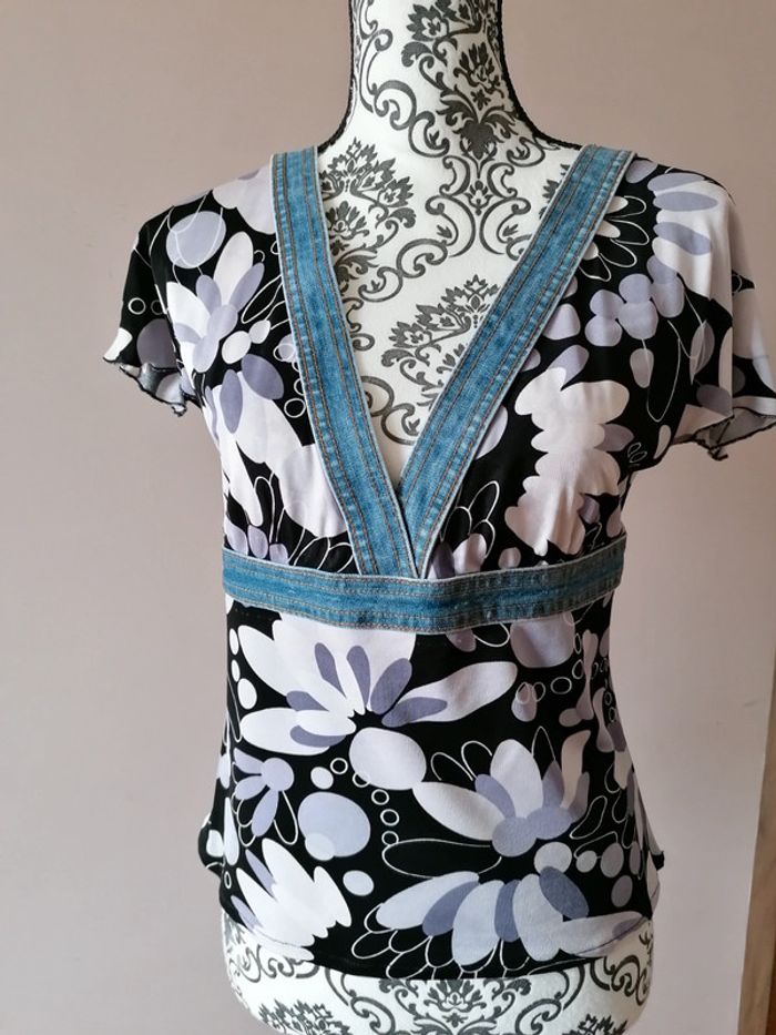 Petit top fluide et léger #kookai Beau décoleté avec bande en jean et bande en jean sous la poitrine #deborahdubois1taille38