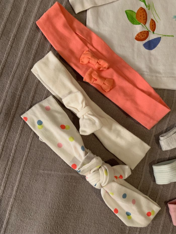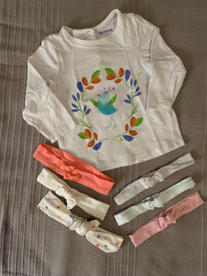 Lot 1 Te shirt manches longues Orchestra + 6 bandeaux 12 mois Envoie rapide 📦 N’hésitez pas à consulter mon dressing pour faire votre lot car beaucoup d’articles disponibles à petits prix 😊
