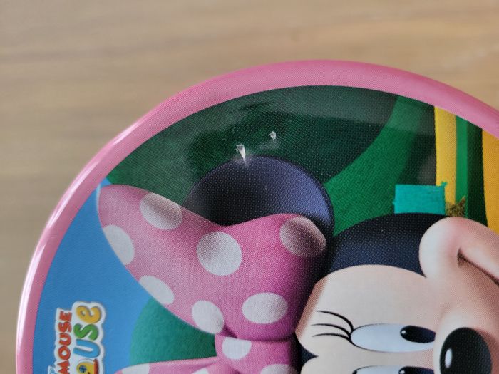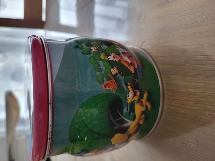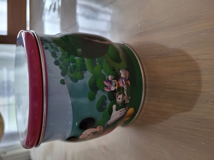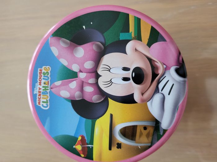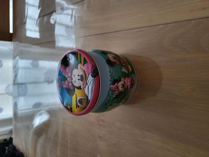Boîte en fer maison de Mickey en bon état ⚠️ quelques petits éclats sur le couvercle et l'intérieur du couvercle a des marques noires voir photos Hauteur 10,5 cm