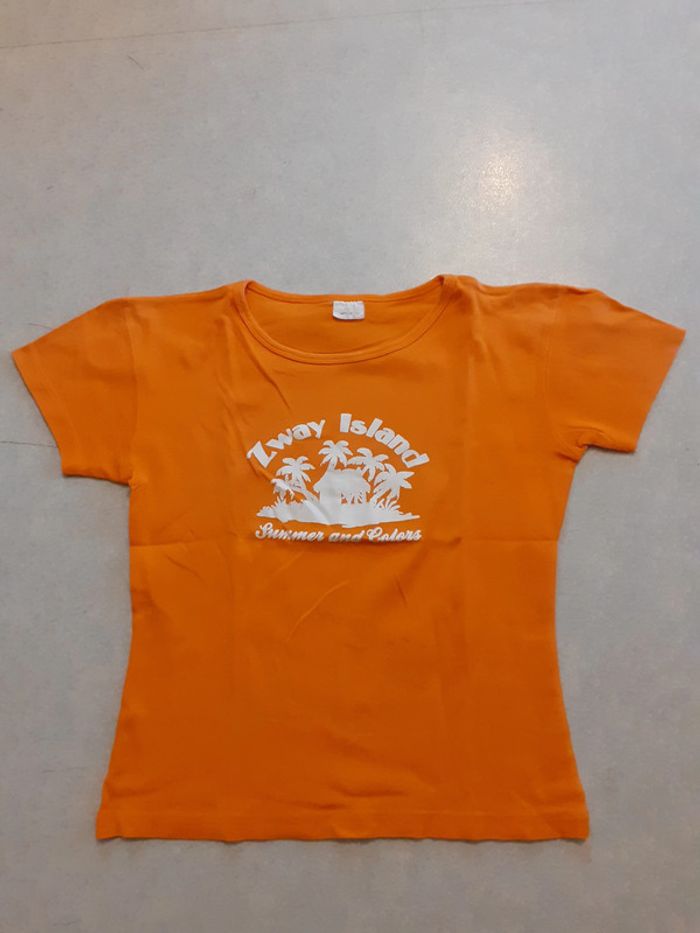 T-shirt orange imprimé blanc "Zway Island" sur le devant manches courtes taille 14 ans