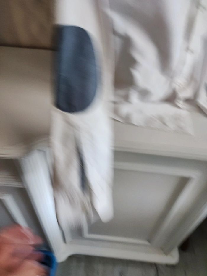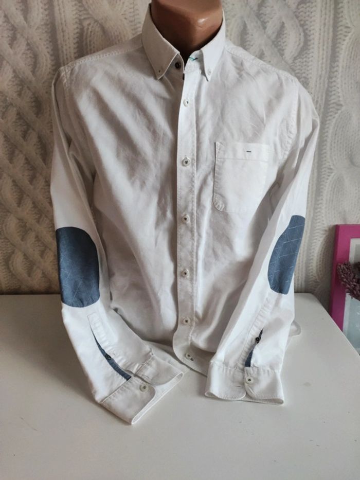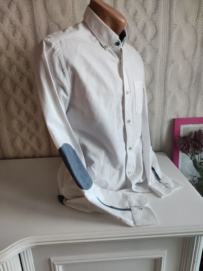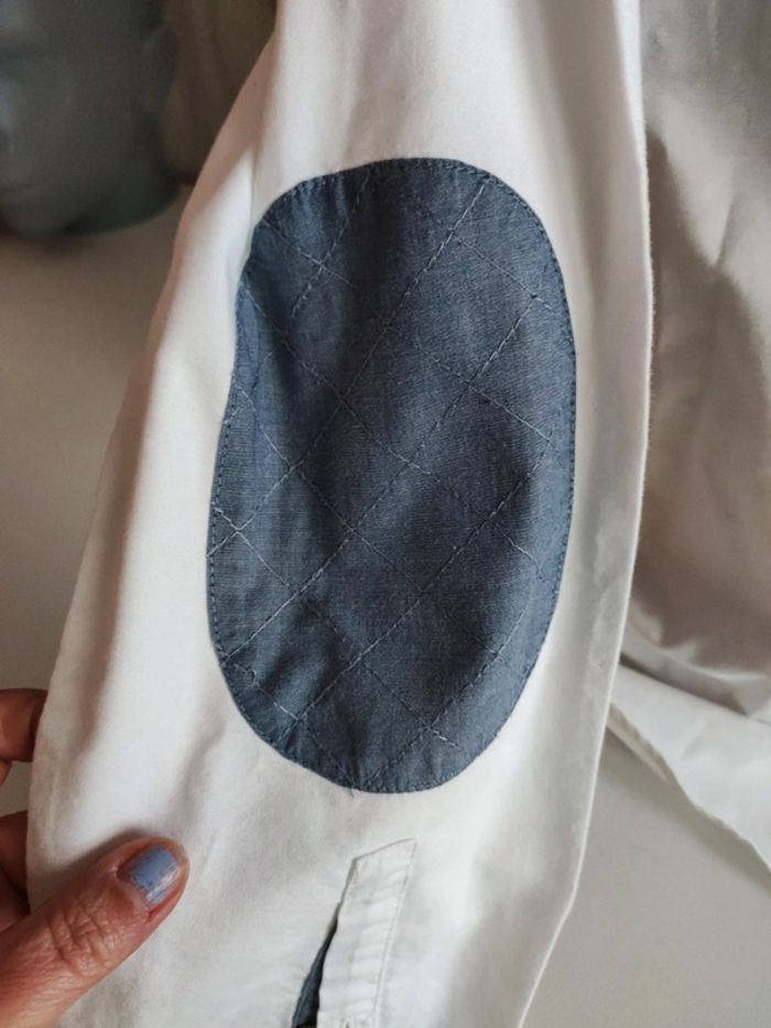 Très bon état chemise blanche avec coudes bleus #baronnejules #baronnehomme