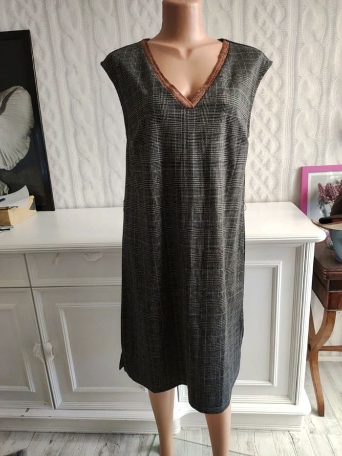 Robe sans manche avec un tissu assez épais (type laine) mi-saison chez la halle taille 44 Très bon état Emplacement ceinture (livrée sans ceinture) Longueur 99cm Aisselle à aisselle 47cm La validation de la commande se fera sous 14 jours après réception Les lots sont possibles sur demande Prix ferme #baronne44 #baronnelahalle