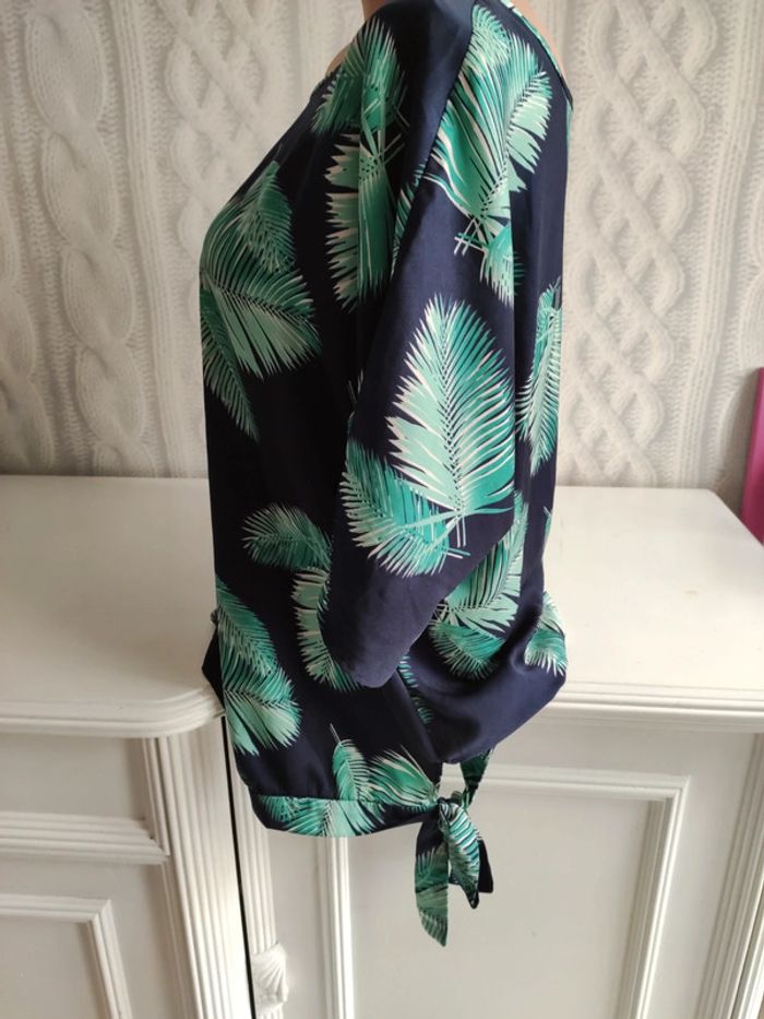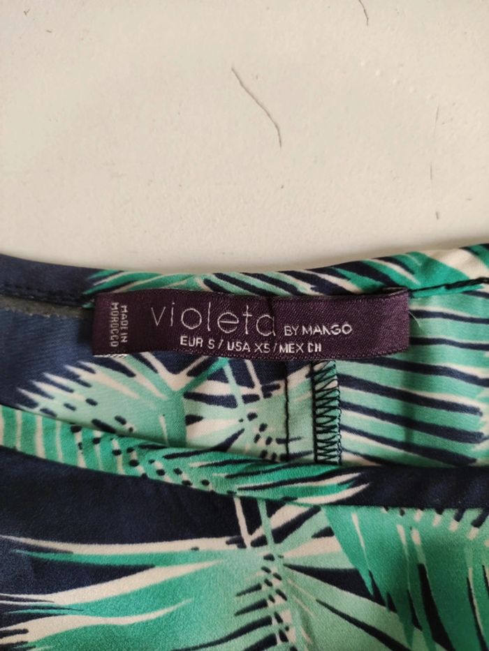 Blouse en taille S mais extra-large peut convenir à des tailles supérieures (vérifiez vos mesures) manches 3/4 forme chauve-souris petit nœud à la taille pour serrage aisselle à aisselle 65 cm Très bon état 100 % polyester marque Mango (Violeta) #baronne36 #baronnemango #baronnepolyester