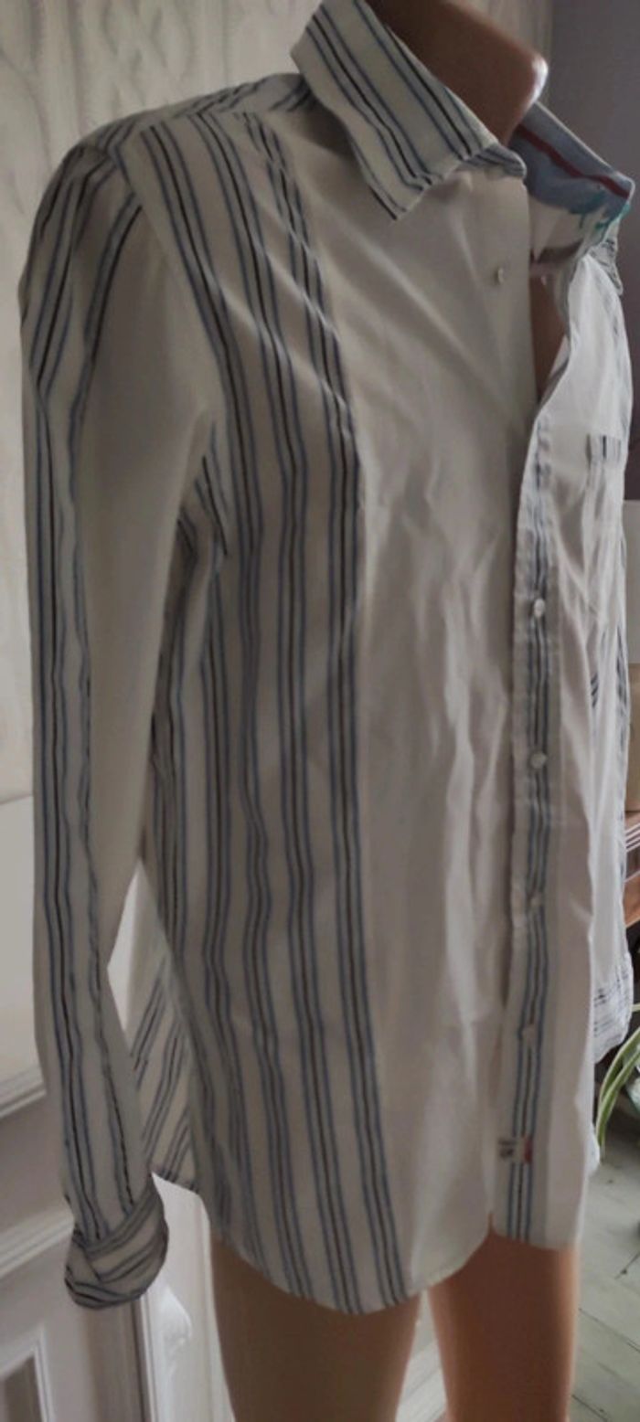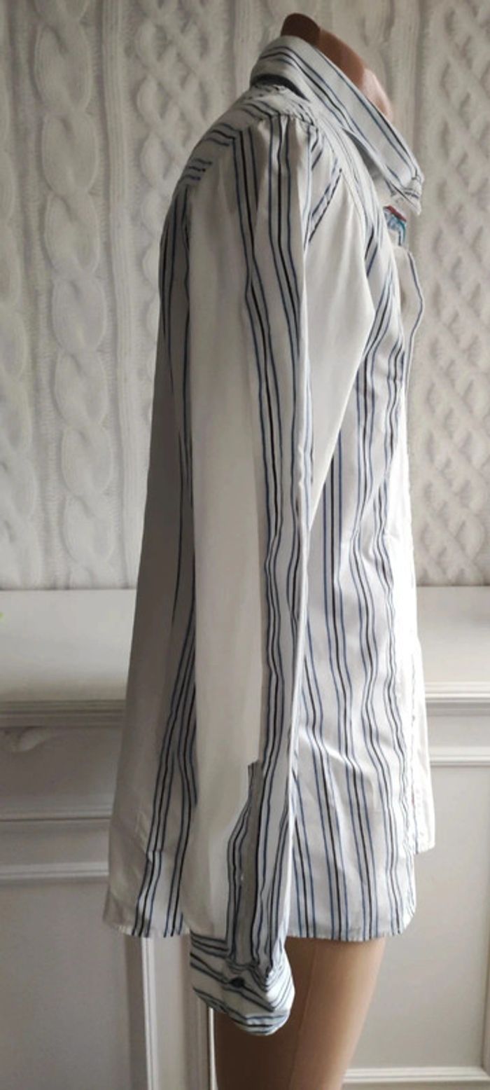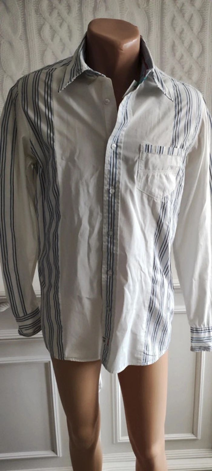 Très bon état pour cette belle chemise bicolore rayé blanche de basse avec rayures es. Taille s. 100%coton #baronnehomme #baronneliberto #baronnecoton
