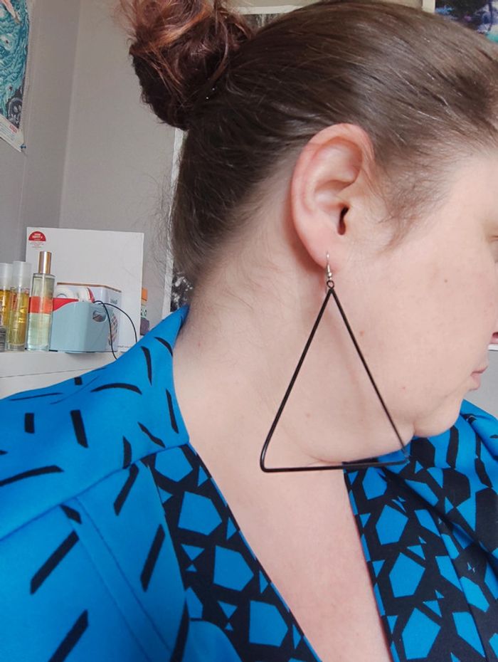 Grande oreille en triangle métal noir très bon état #baronneboucle