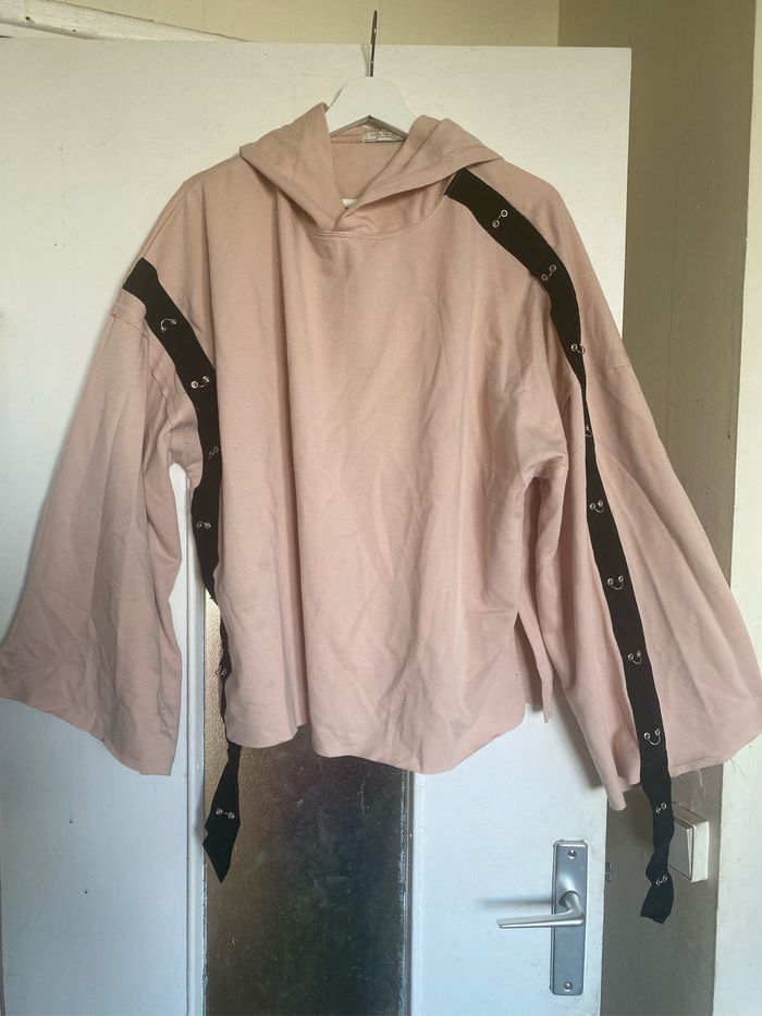 Sweat à capuche rose détail anneau Zara taille M - photo numéro 1